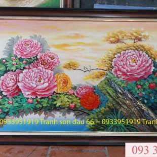 Tranh sơn dầu hoa mẫu đơn tượng trưng cho sự giàu sang, phú quý