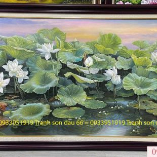 Tranh sơn dầu cánh đầm hoa sen 3d treo tường đẹp nhất 22