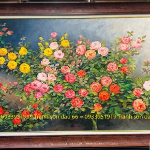 Tranh sơn dầu hoa hồng dịu dàng và cuốn hút