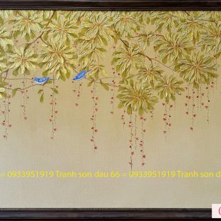 Tranh sơn dầu hoa lộc vừng dát vàng nghệ thuật cao cấp