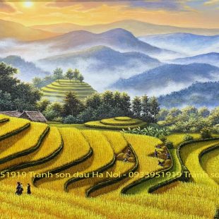 Tranh sơn dầu đồng quê Việt Nam 3D treo phòng khách đẹp 19