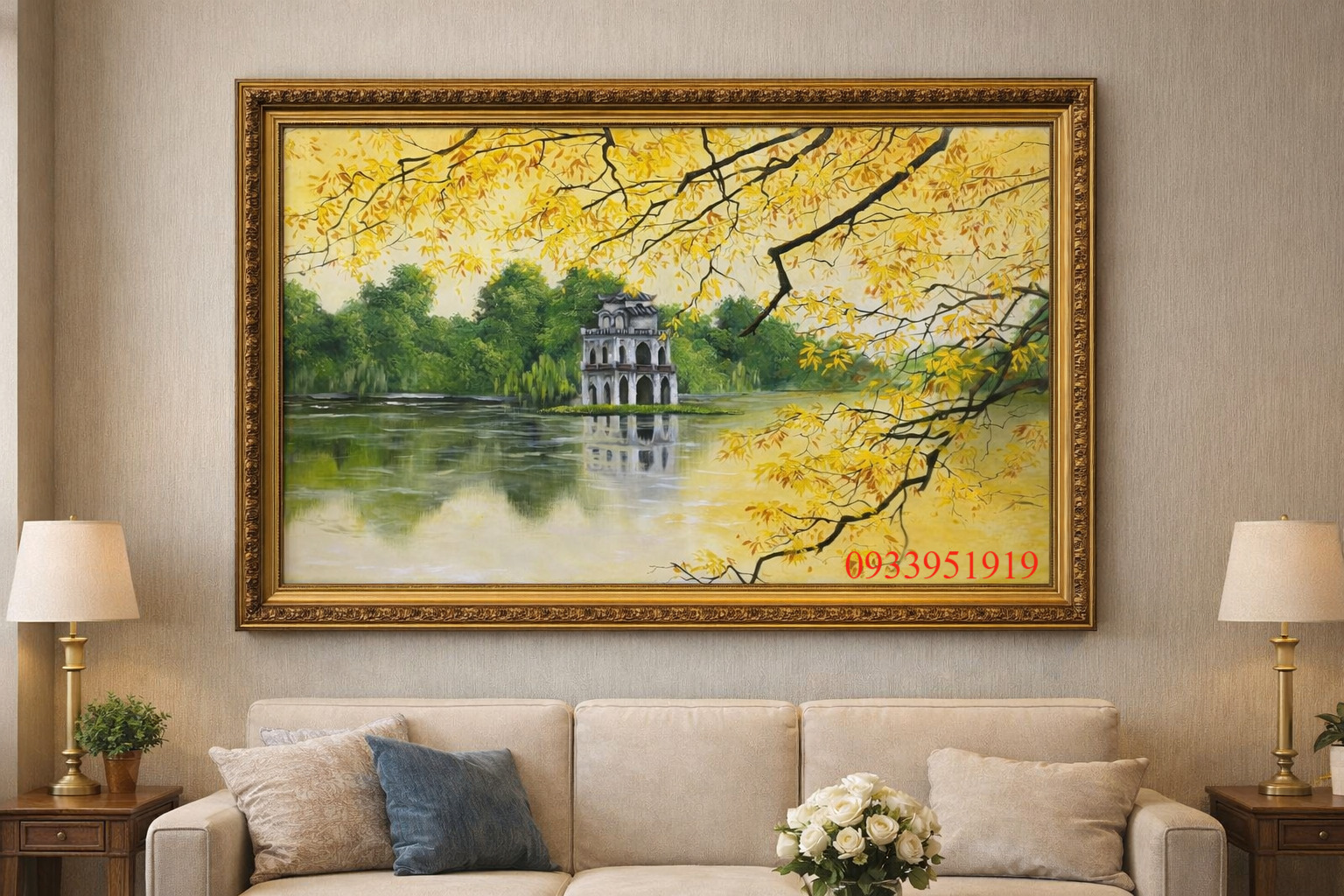 Tranh sơn dầu Hồ Gươm, tranh quà tặng hồ gươm đẹp