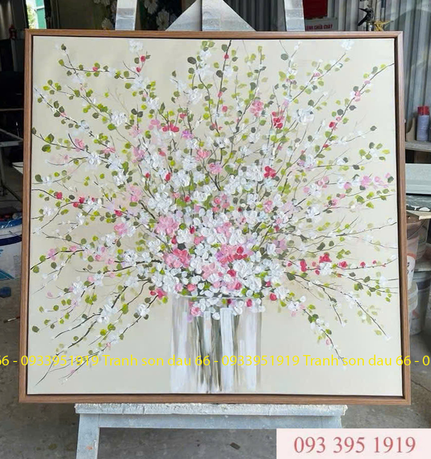 Tranh sơn dầu hoa hiện đại, tranh vẽ hoa khổ vuông treo tường