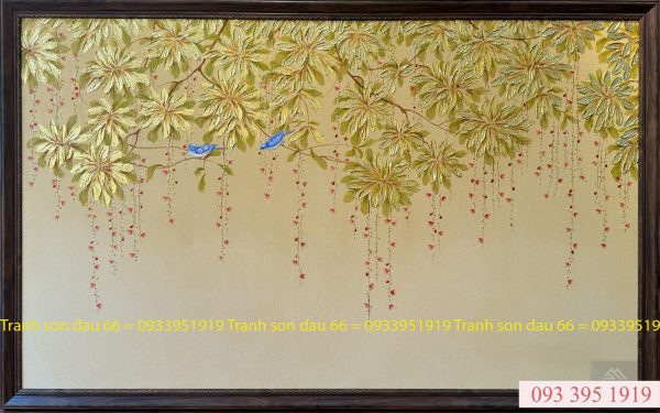 Tranh được vẽ trên toan sơn dầu cao cấp, dát vàng 24K hoặc vàng quỳ Nhật.