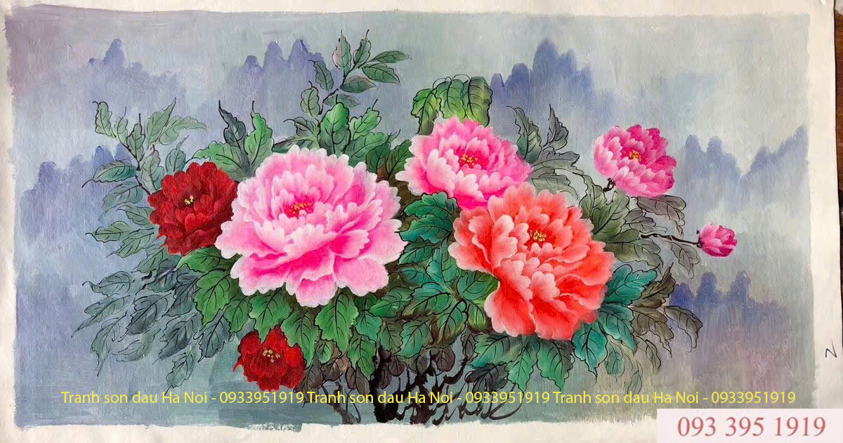Tranh sơn dầu hoa mẫu đơn nữ hoàng của các loài hoa
