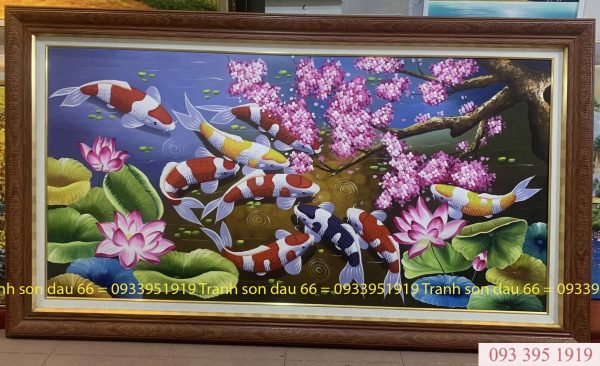 Tranh hoa sen cá chép thường có bố cục mềm mại, hài hòa, mô tả cảnh: